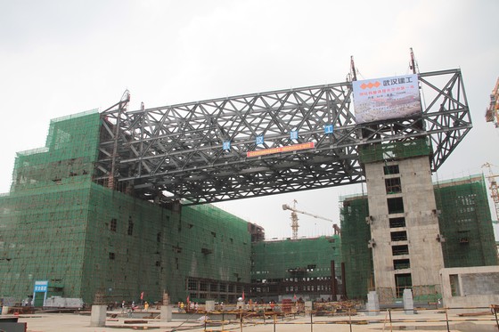 昨日,由武漢建工集團承建的武漢市行政服務中心(市民之家)工程成功地進行了鋼結構連廊的整體提升施工,將這個寵然大物提升到33米的安裝位置。該鋼結構的大跨度、大噸位、大體積整體提升創湖北省乃至中南地區鋼結構吊裝施工首例,堪稱“華中第一提”。據悉,新建的武漢市行政服務中心下個月結構封頂,明年5月竣工。