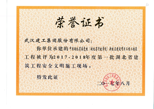 2017年,武漢建工集團進一步加強施工現場安全文明施工管理,取得顯著成效。日前,根據《湖北省建筑工程安全文明施工現場評審辦法》,湖北省建設工程質量安全協會表彰了一批在湖北省安全文明施工中有重要貢獻的施工項目。集團“武漢亞洲醫院”等7個工程項目獲“2017-2018年度第一批湖北省建筑工程安全文明施工現場”榮譽證書。
